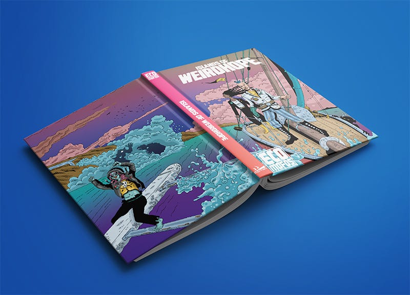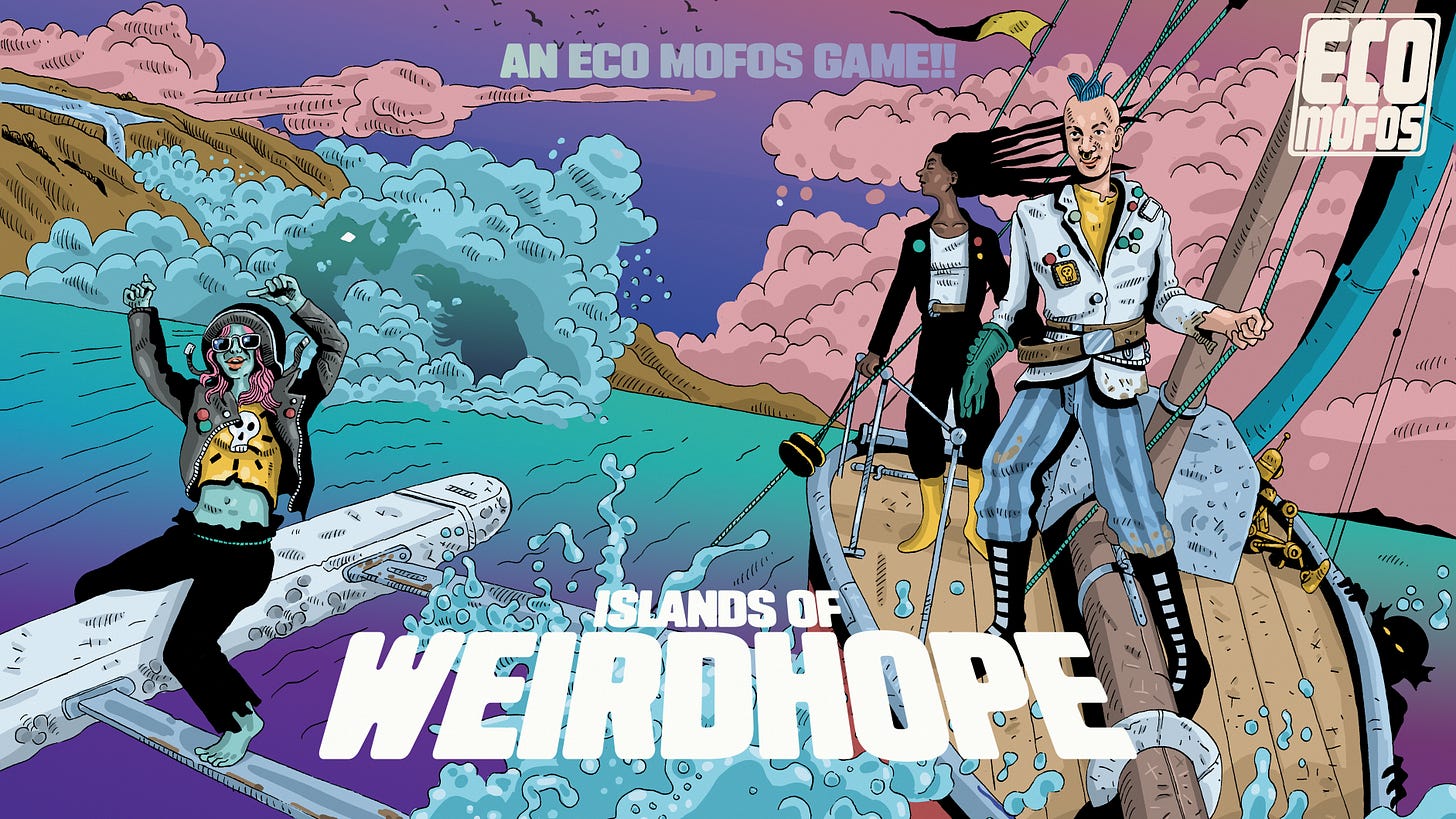 Islands of Weirdhope is a psychedelic self-contained new game with minimalist rules for group or Solo play that compliments the Award-winning ECO MOFOS!! rulebook, exploring the wonders and weirdness of the future seas. The game imagines a possible future brimming with hope but fundamentally weird. Built from procedural content generation, the GM can enjoy the surprise as much as the player Punks.